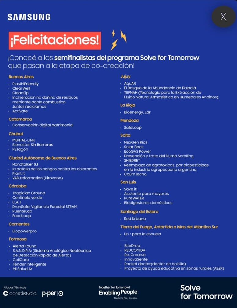 Con gran orgullo compartimos que el proyecto Centinela Verde: «Sistema de detección temprana de incendios», elaborado por Sofía Carrizo (4ATM), Nahuel Lobos (5ATM) y Franco Ibarra (5ATM), ha sido seleccionado entre más de 300 propuestas cordobesas para avanzar a la próxima instancia del programa Solve For Tomorrow impulsado por Samsung.